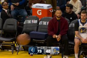 勇士替补席还剩库里(伤缺)、斯潘塞、莱昂斯三个人。