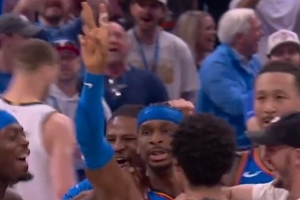 GIF-掘金最后一攻无果,亚历山大朝着全场单手比2(自己的号码)